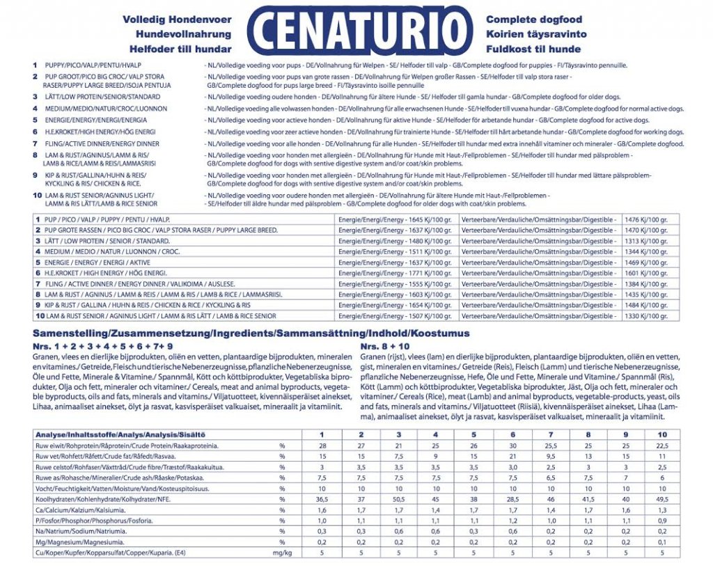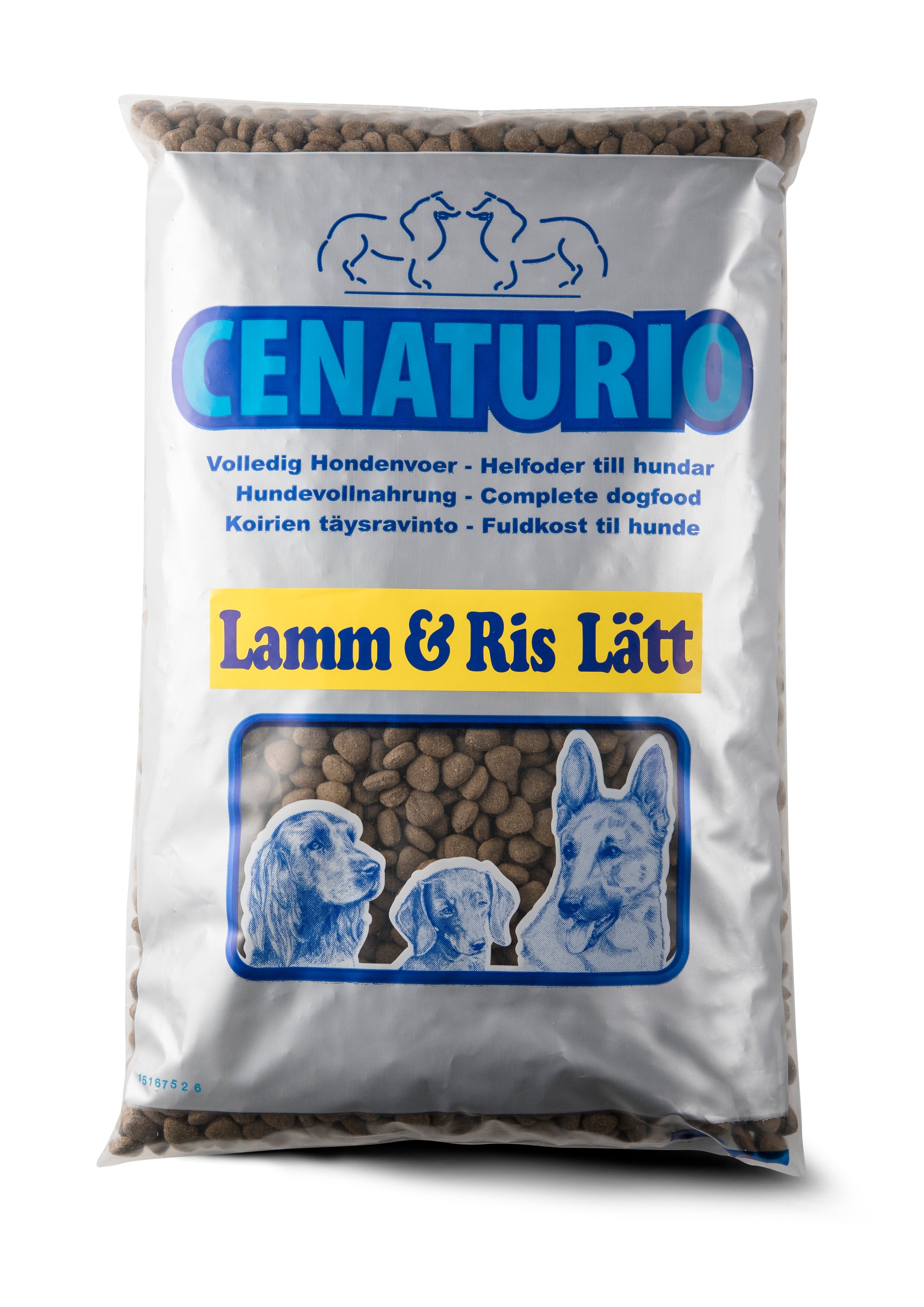 Är en extra premiumprodukt tillverkad av enbart högkvalitativt lammkött och ris. Råvarornas kvalité gör fodret extra lättsmält och skonsam mot tarmarna. Lättfodret har ett lägre energi-innehåll och mer fibrer så att hunden känner sig mättare. Det animaliska proteiner är från enbart lamm vilket passar även känsliga magar. Det är självklart berikat med dagsbehovet av vitaminer och spårämnen. CENATURIO är helt fritt från färgämnen, främmande smak- och luktämnen, GMO samt syntetiska konserverings-medel.